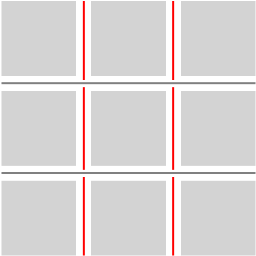 CSS Multicol 1 § 4 Column Gaps and Rules allows for rules to be drawn between columns in a multicol container. This specification expands upon the column-rule-width, column-rule-style, and column-rule-color properties, adding equivalents in the row direction, expanding their application to other container layouts, and giving advanced control over where and how gap decorations are painted.