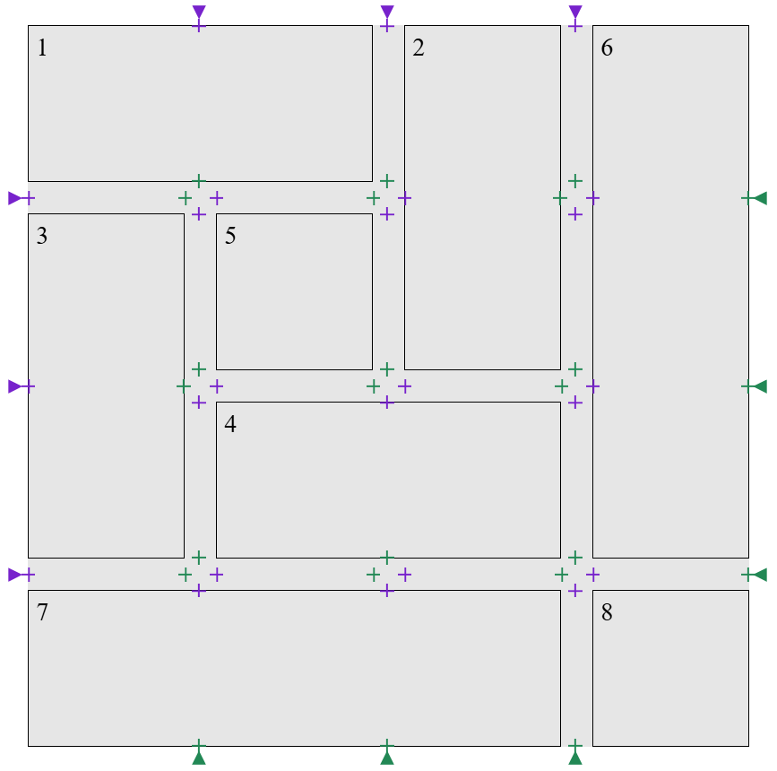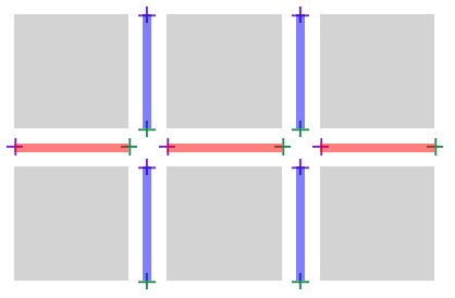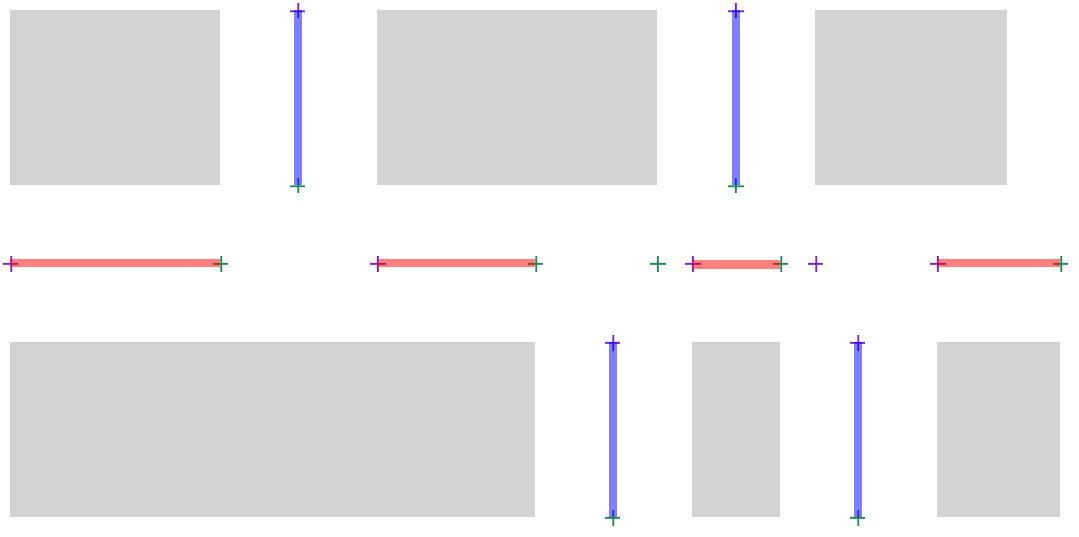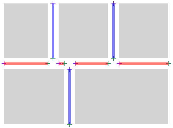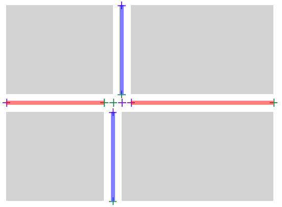 When a cross/perpendicular gap touches G (either overlapping it, or abutting it without overlapping), create two endpoints which align with the boundaries of the cross/perpendicular gap: