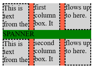 Note: It is important to note that column gaps in Multicol containers break when encountering a spanner element or a row gap.